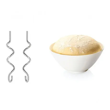 2 عدد میله همزن استیل توربو برای همزدن سریع و بدون نقص 2 قلاب خمیر زنی مناسب برای مصارف سنگین ساخته شده از استیل ضد زنگ